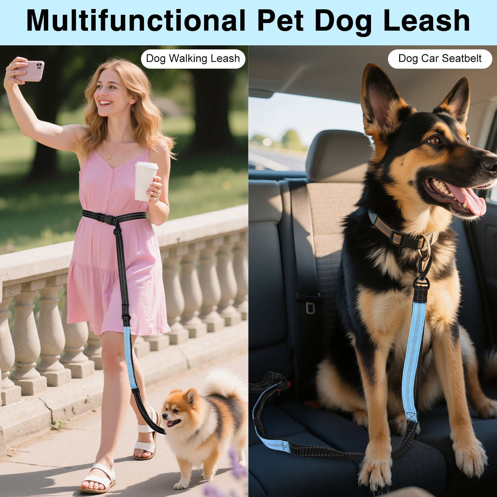 Pawaboo Hands-Free Dog Leash & Car Seatbelt Shockproof Bungee, Crossbody Design