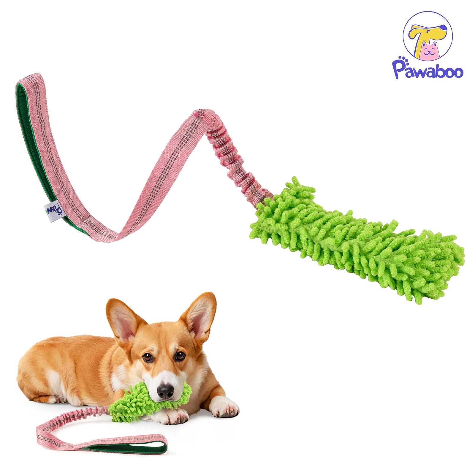Pawaboo Plush Dog Chew Toy with Elastic Handle, Soft Polar Fleece